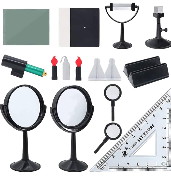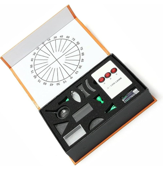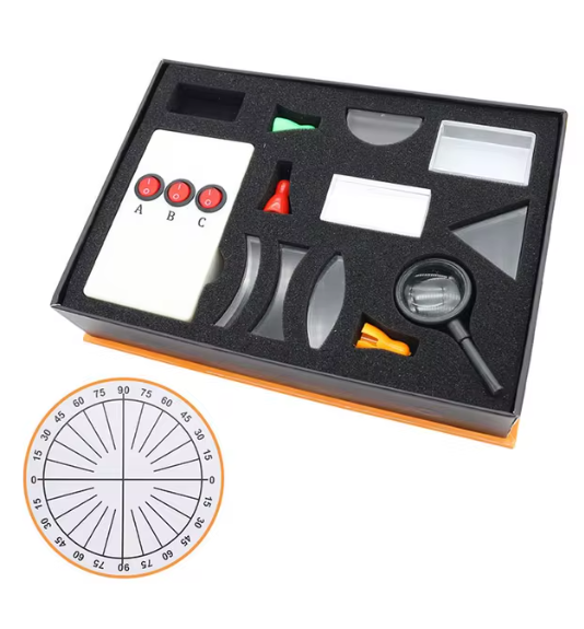 Ensemble d’optiques à prisme triangulaire et lentille convexe, boîte d’expérimentation optique en sciences physiques