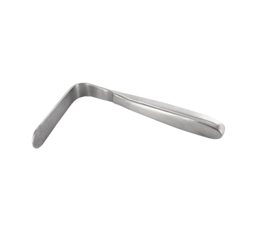 En effet, son manche coudé en angle droit permet au médecin de baisser la langue du patient tout en maintenant l’instrument par la poignée située à un niveau plus bas que la bouche du patient.