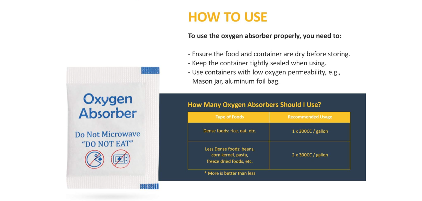 - Une mauvaise conception commune : certaines personnes peuvent penser que le sac Mylar aura l’air « emballé sous vide » lorsque l’oxygène a été retiré, sinon les absorbeurs d’oxygène ne fonctionnent pas. C’est faut. Les absorbeurs d’oxygène n’absorbent que l’oxygène, qui est environ 21 % de l’air, donc 1/5 du volume d’air disparaîtra mais 4/5 de l’air reste peu importe le nombre d’absorbeurs d’oxygène utilisés.