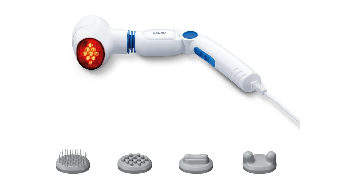Cet appareil de massage à infrarouge Beurer MG 40 est un instrument dont le rôle est d’assurer la remise en forme ainsi que les soins de santé par le biais des vibrations de l’appareil et des rayons infrarouges. Il peut donc réduire la fatigue après un effort physique, et cela, grâce à ses 4 accessoires de massage interchangeables qui sont la brosse, les nodules 1 et 2 ainsi que la conique. Par ailleurs, ce masseur infrarouge peut être utilisé pour amincir les fesses, les hanches et les cuisses. L’appareil de massage à infrarouge Beurer MG 40, que ce soit pour faire un massage ponctuel ou intensif, est très pratique et simple à utiliser grâce à sa forme ergonomique. En effet, ce masseur infrarouge est doté d’un poignet qui est à la fois antidérapant et réglable afin d’atteindre les zones corporelles qui sont les difficilement accessibles telles que le dos ou les jambes.