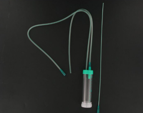 Une sonde d’aspiration de taille 10 Fr est montée sur le récipient.
