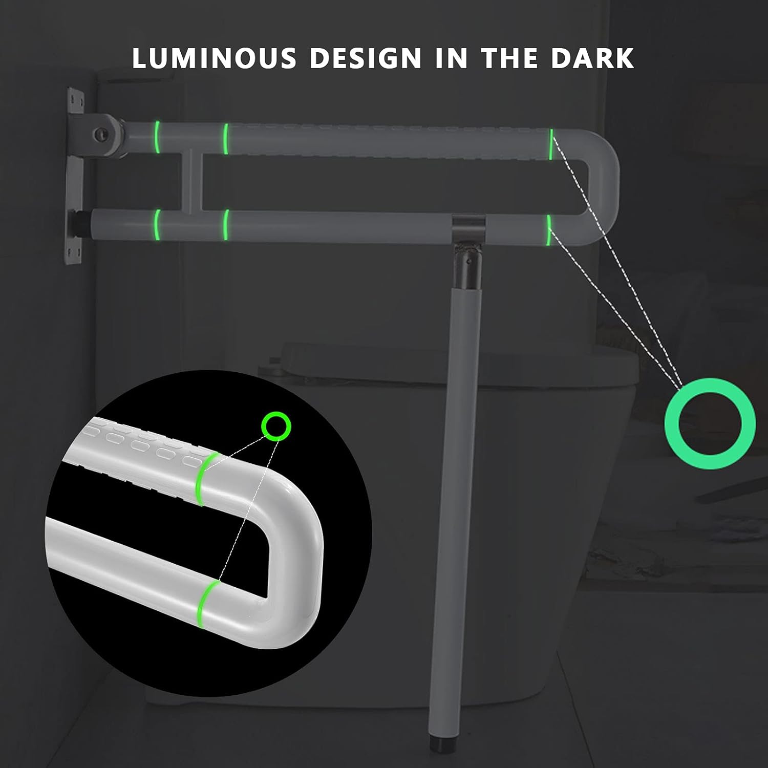 - Visible la nuit: L’anneau fluorescent dans la barre d’appui des toilettes peut être trouvé avec précision dans l’obscurité pour fournir un soutien rapide et augmenter la sécurité.