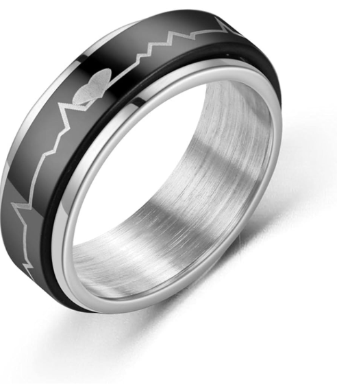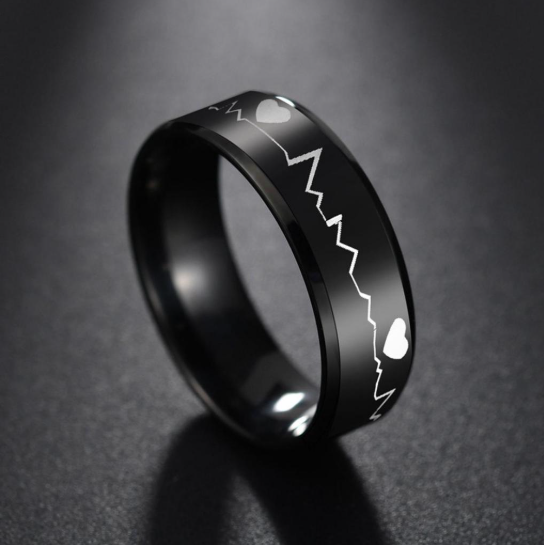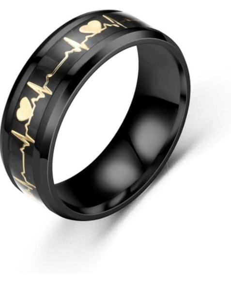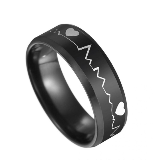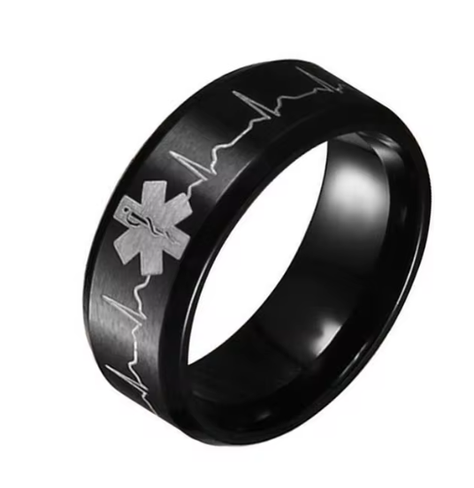 Bague médicale Alert ECG – Bande noire 8 mm ECG et symbole médical gravé – Il s’agit d’une sorte d’urgence médicale.