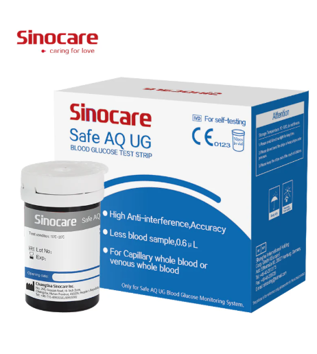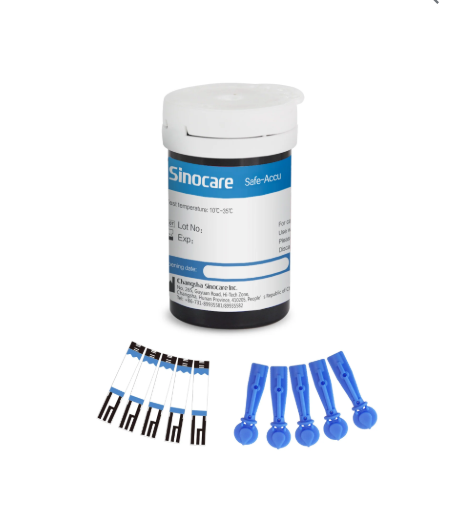 - Bandelettes de test de glycémie : Ce kit contient 50 bandelettes sans code spécialement conçues pour le lecteur de glycémie Sinocare Safe-Accu 2.