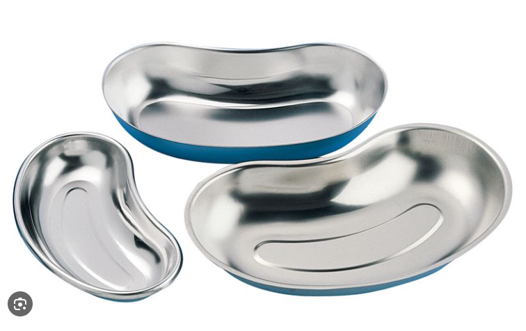 Prenant la forme d’un haricot, ce récipient réniforme est également utilisé pour recueillir les instruments médicaux, lors de soins infirmiers, afin d’avoir le nécessaire à portée de mains pour le soignant. Une fois l’acté réalisé, il se transforme en récipient à collecte pour les pansements usagés, les compresses souillées, les cotons sales ou liquides de toute sorte.