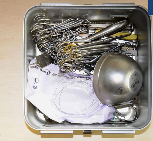 • 2 pinces à pansements droites, 24 cm (longuette)