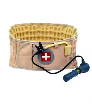 Portée pendant des heures, cette ceinture permet à vos vertèbres de s’écarter, permettant la régénération de vos disques. Elle met fin au pincement des nerfs rachidiens, synonyme de sciatique, lombalgie ou autre cruralgie. Comme vous le voyez sur ces illustrations, avec l’air injecté dans votre ceinture celle-ci va grandir de 7 cm. Ces 7 cm vont permettre d’excercer une forte décompression sur votre colonne.