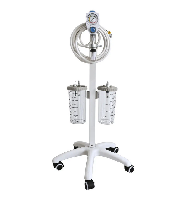 Le chariot d’aspiration médicale intègre le bocal d’aspiration, le tuyau de gaz et le régulateur de vide. Il est conçu pour les prises de vide éloignées du patient et permet d’utiliser plusieurs bouteilles d’aspiration à la fois. Deux ou quatre bouteilles d’aspiration sont accrochées au montant central en alliage d’aluminium, et le régulateur de vide est accroché à l’extrémité supérieure, ce qui est très pratique à utiliser.