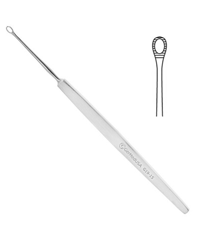La curette auriculaire émoussée est utilisée pour l’élimination en douceur des corps étrangers ou du cérumen ainsi que pour les biopsies dans la région de l’oreille.
