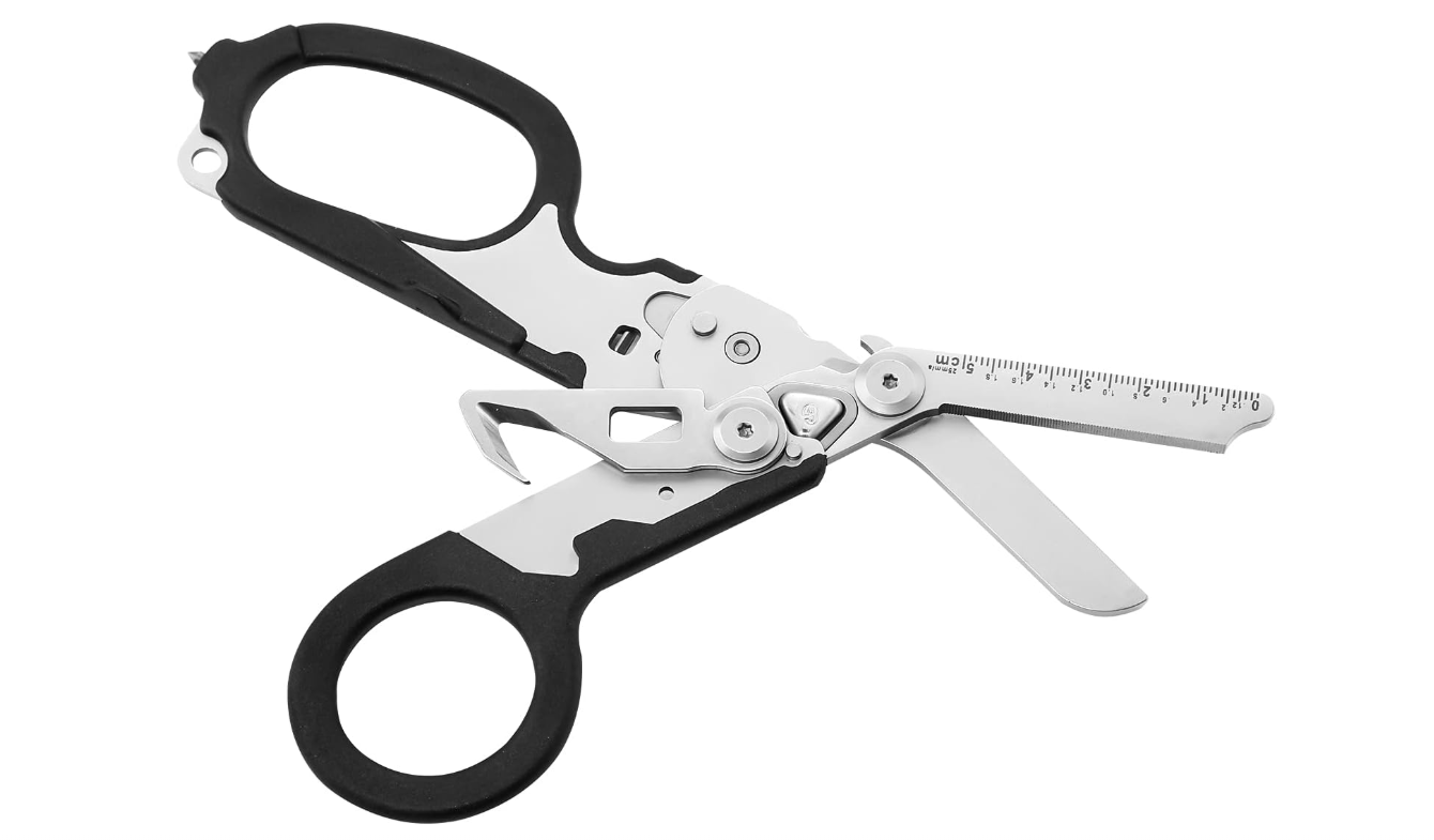 ★ Outil multifonction en acier inoxydable avec 6 outils, y compris des ciseaux pliants d’intervention d’urgence, un coupe-sangle, un coupe-anneau, une règle, une clé à réservoir d’oxygène et un brise-verre en carbure