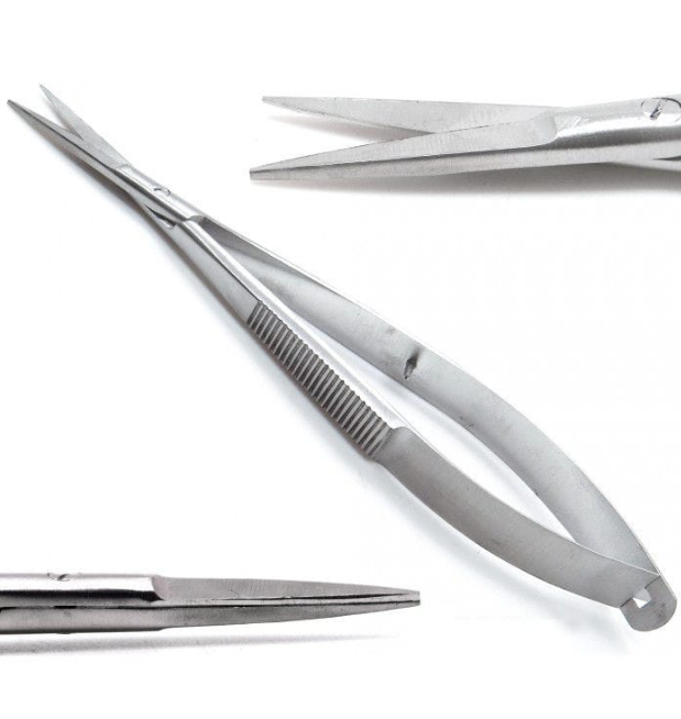 Ciseaux Castroviejo droits et tranchants: Extrémité de travail 1,6 cm, poids net 0,44 oz.