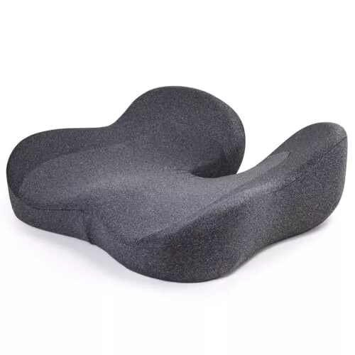 - Améliorer la posture assise et soulager l’inconfort corporel: Le coussin de siège coccyx soulage la pression du corps en soulageant la pression du coccyx. Les coussins de chaise Coccyx peuvent offrir un soulagement aux personnes souffrant de maux de dos, de hernies ou de disques bombés, d’une fracture du coccyx, d’une coccydynie, d’une sciatique, d’un inconfort dû à la grossesse ou de tout inconfort causé par une blessure. Dans l’ensemble, nos coussins de siège sont conçus pour aider à soulager la pression exercée sur le bas du dos, les hanches et les cuisses.