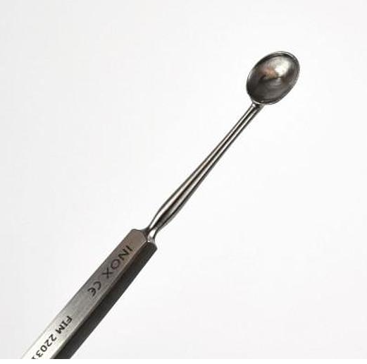 À cet effet, l’appareil dispose d’une pointe de cuillère concave pouvant mesurer 8.0 ou 10 mm. De plus, la cuillère présente une conception atraumatique qui permet une extraction propre du globe oculaire. En conséquence, les chirurgiens laissent l’orbite prête à recevoir un implant orbitaire.