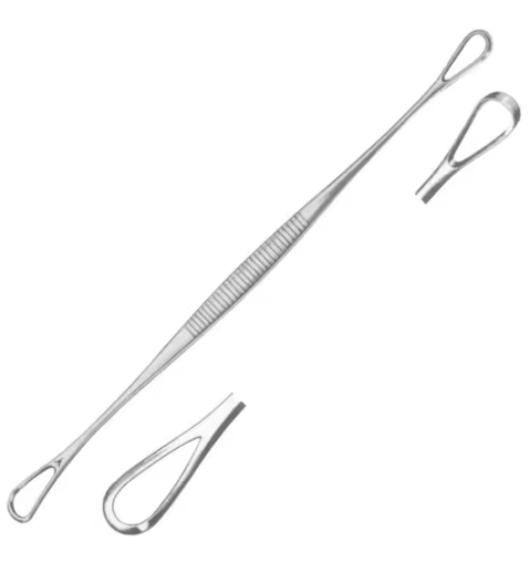 S’accroche et retire la couche utérine superficielle des zones requises pour les besoins diagnostiques et thérapeutiques. Utile pour déloger les caillots et éliminer le tissu placentaire adhérent.