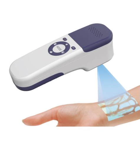 Chercheur de veines portable conçu pour projeter l’image des veisseaux sanguins sur la surface de la peau avec précision et rapidité. Indiqué pour adultes, enfants et nouveau-nés.