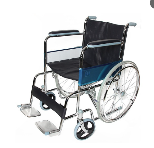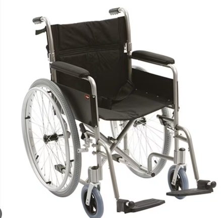 FAUTEUIL ROULANT ADULTE EN ACIER CHROME OU ALUMINIUM DOUBLE BARRE CROISÉE ACCOUDOIR ET, REPOSE PIED FIXE, ROUE ARRIÈRE PNEUMATIQUE 24″ PNEUMATIQUE , SIÈGE 51CM :
