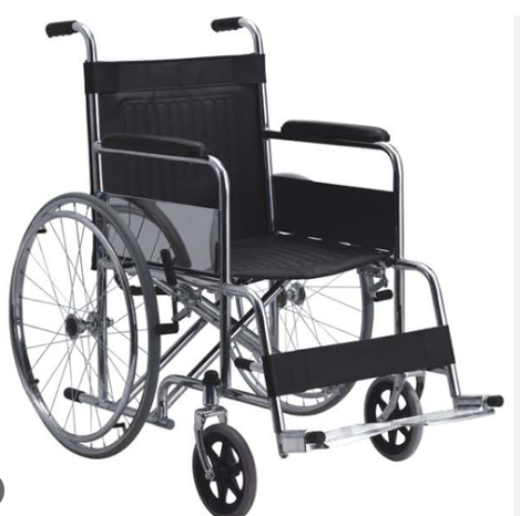 FAUTEUIL ROULANT ADULTE EN ACIER CHROME OU ALIMINIUM DOUBLE BARRE CROISÉE