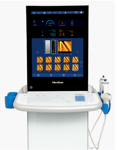Un nouvel appareil d’examen, le « FibroScan », est entré ces dernières années en service dans les unités d’hépatologie. Conçu par la société française Echosens, le FibroScan est une technologie aidant les cliniciens à diagnostiquer et assurer le suivi des maladies chroniques du foie.