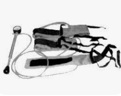 - Le garrot chirurgical est fourni avec un brassard pour bras 57 x 9 cm et un brassard pour cuisse 96 x 13 cm, chacun des 2 brassards est doté d’une vessie sans latex.