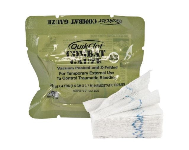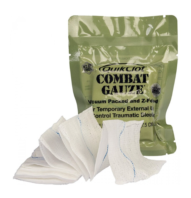 La gaze de combat QuikClot est une gaze stérile de 7.5cm x 3.7m.