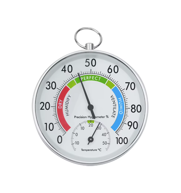 Thermo-hygromètre Humidité 0-100%RH, température -15-50℃ Laiton 320 g plusmn; 2,5 % Humidité ±5%RH, température ±2℃ Alliage d’aluminium + plastique 150 mm Environ 10 x 10 x 2,5 cm / 3,9 x 3,9 x 1,0 pouces Boîtier en laiton et façade b