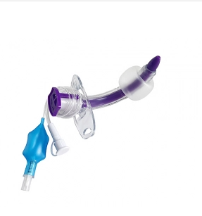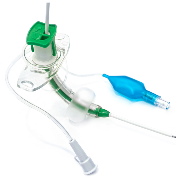 Cylindre creux stérile conçu pour être inséré dans une ouverture artificielle pratiquée dans la trachée au cours d’une trachéotomie pour fournir une voie respiratoire ouverte. Il est construit en plastique et inclut une canule interne. Il contient un ballonet mais n’est pas fénestré. Il est tenu en position par un support de tube de trachéotomie fixé autour du cou du patient.