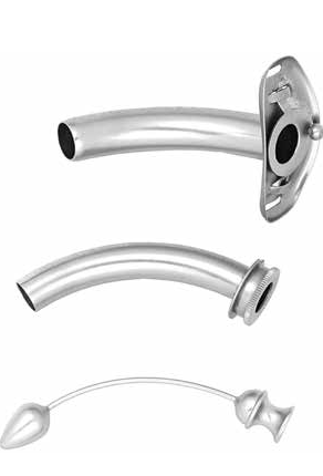 Une canule de trachéotomie fenêtrée présente des ouvertures au niveau de l’arc, pour permettre une circulation plus efficace de l’air vers le haut jusqu’aux cordes vocales. Cela peut permettre d’obtenir une voix plus forte.