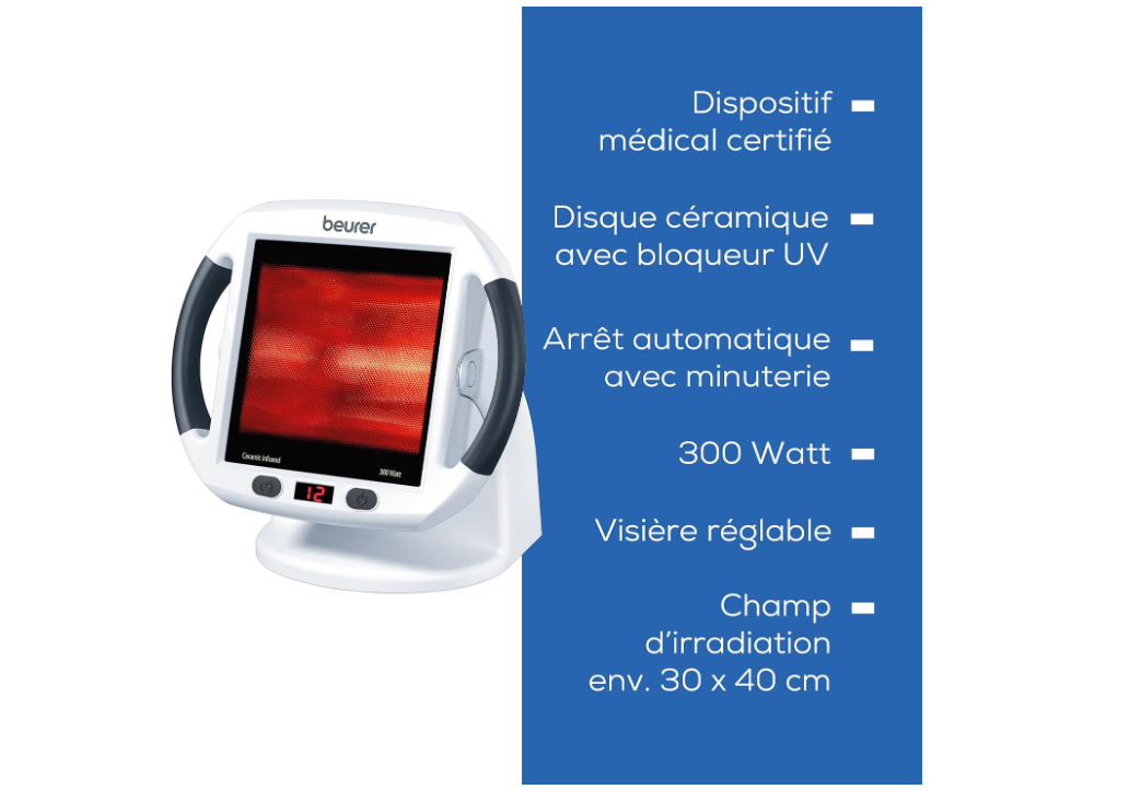 La lumière infrarouge favorise la circulation sanguine, atténue les contractions musculaires et les états grippaux.