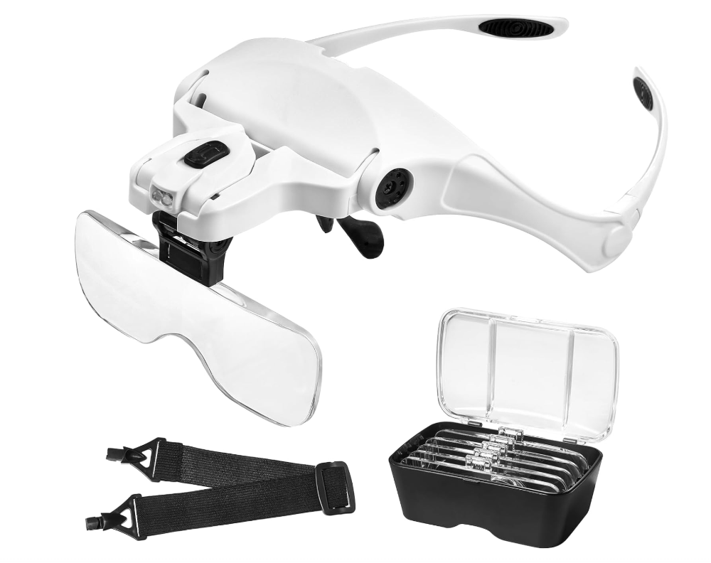 Loupe serre-tête avec double éclairage à LED