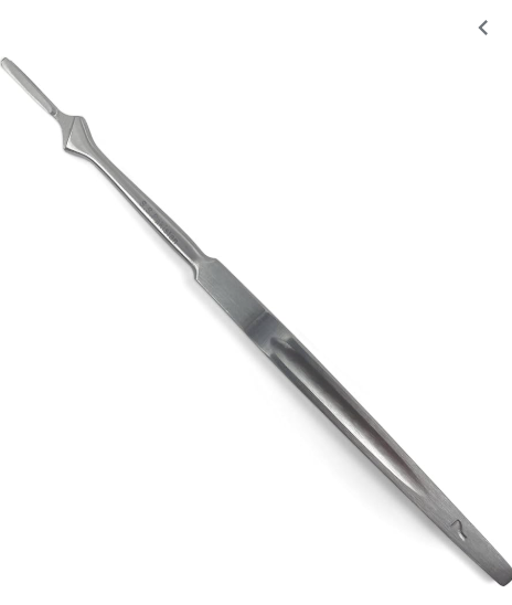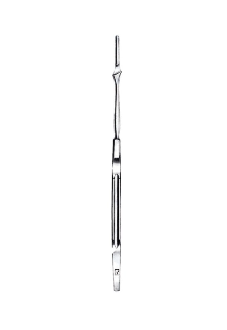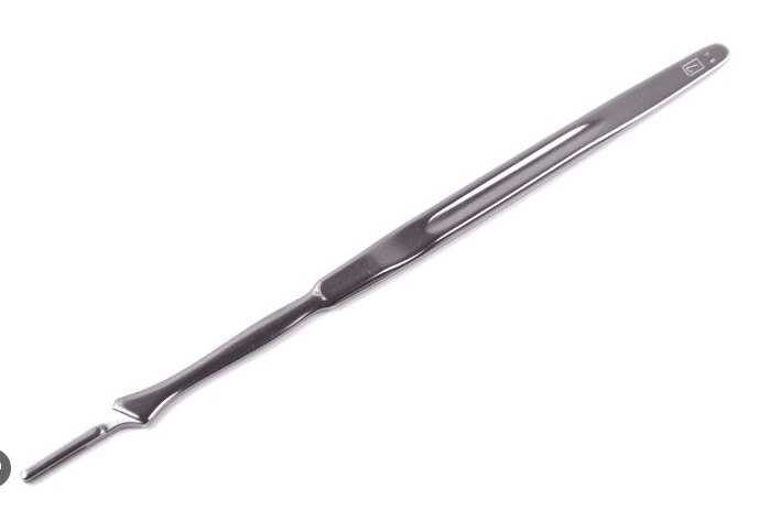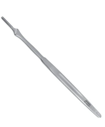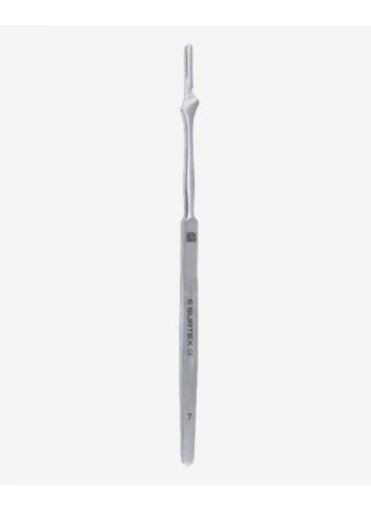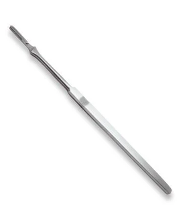 Dispositif interchangeable d’un bistouri fonctionnant comme un manche conçu pour supporter une lame compatible. Ce dispositif et la lame forment ensemble un instrument chirurgical à lame unique utilisé par le médecin pour couper ou disséquer des tissus.