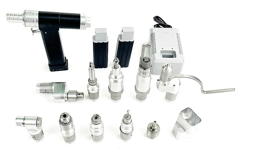 Le Outils électriques multifonctions pour la chirurgie orthopédique pièces jointes incluses : Scie sagittale, scie sagittale Stryker, perceuse à os, perceuse à os à double fonction, perceuse à canule, perceuse à canule à double fonction, perceuse crânienne, fraise crânienne, perceuse aléseuse acétabulum, scie alternative, scie à sternum et fil de Kirschner.
