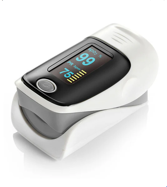 Dispositif photo-électrique portable alimenté par batterie, servant à mesurer la quantité d’hémoglobine oxygénée dans le sang (SpO2). Les signaux, généralement produits par des diodes électroluminescentes (LED) et un capteur situés dans une sonde ou intégrés directement, sont utilisés pour effectuer les mesures par spectrophotométrie.