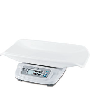 - Avec fonction mémoire : Permet de vérifier la différence entre la dernière pesée et la précédente stockée en mémoire.Le pèse-bébé est doté d’un plateau amovible blanc mat doux.