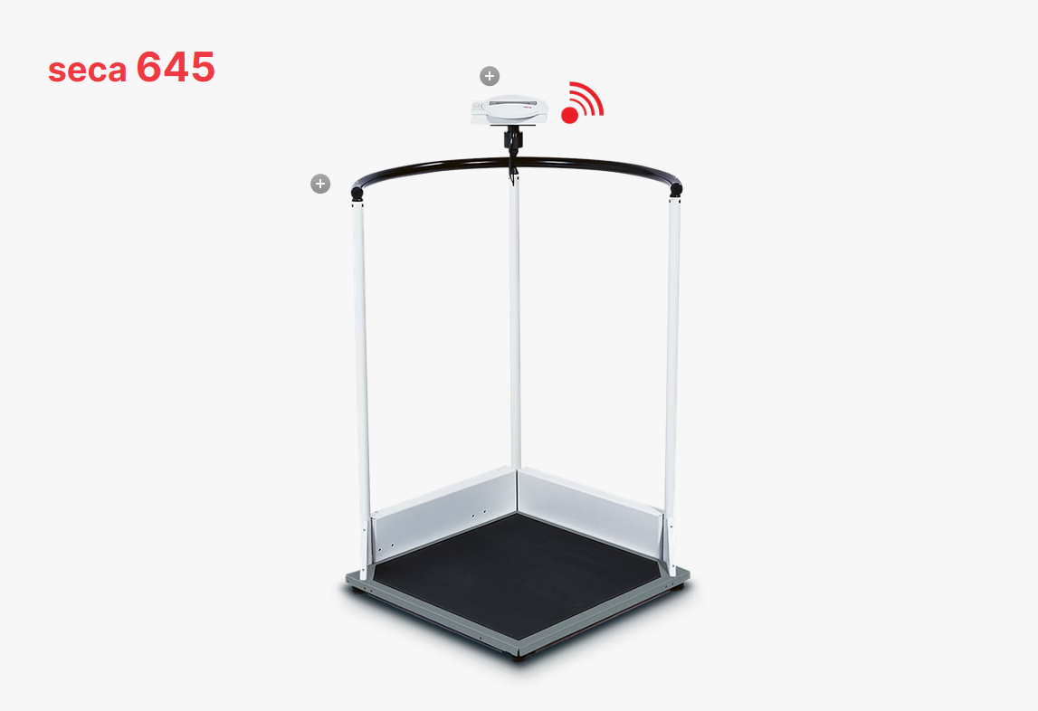 La plateforme SECA645 convient parfaitement pour une utilisation en maison de retraite, en gériatrie, en médecine interne…, y compris pour des personnes en surpoids jusqu‘à 300 kg.
