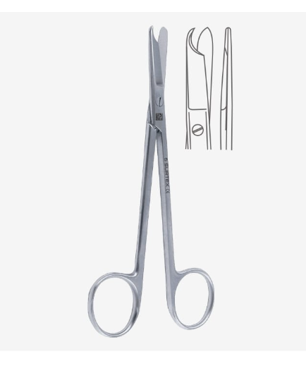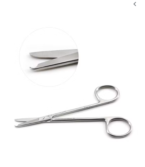 De plus, la pointe spéciale des ciseaux opératoires est utile pour glisser sous la suture afin de l’isoler. Les lames biseautées coupent ensuite facilement la suture.