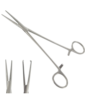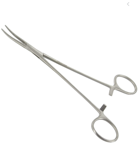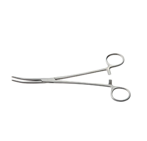 Pince longue droite permettant l’arrêt de saignement au niveau de l’utérus.