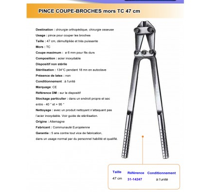 PINCE COUPE-BROCHES 47CM MORS TC