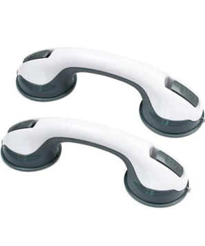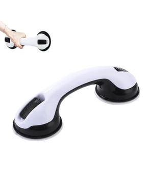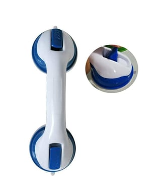 Avec support bleu antidérapant sur la poignée. Pour une installation rapide et facile, sans outil, sur toute surface lisse, propre et sèche (type carrelage). Pour que la ventouse accroche bien, la surface doit être plane et lisse (ne pas poser la ventouse sur les joints du carrelage).