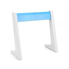 • Couleur : gris clair avec surface de rangement bleue