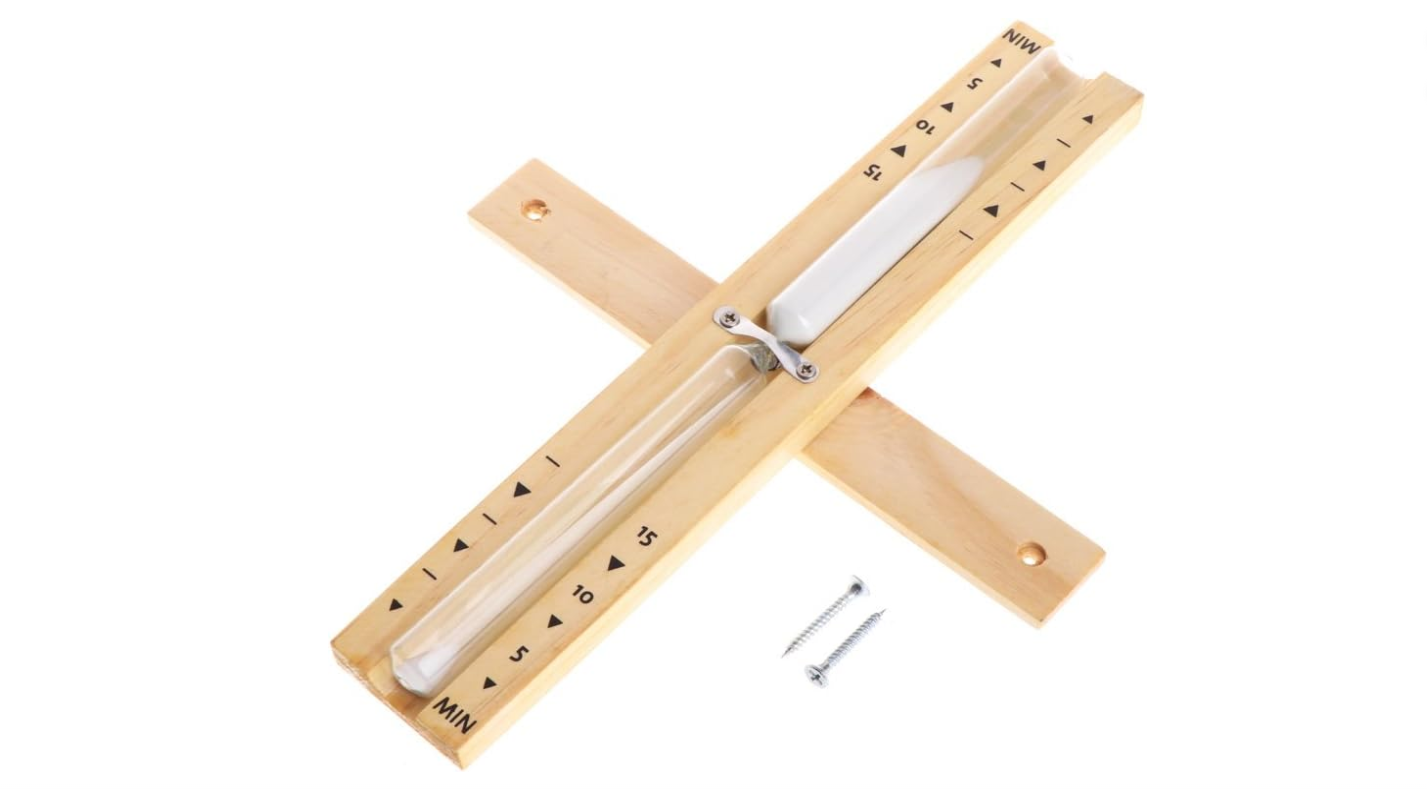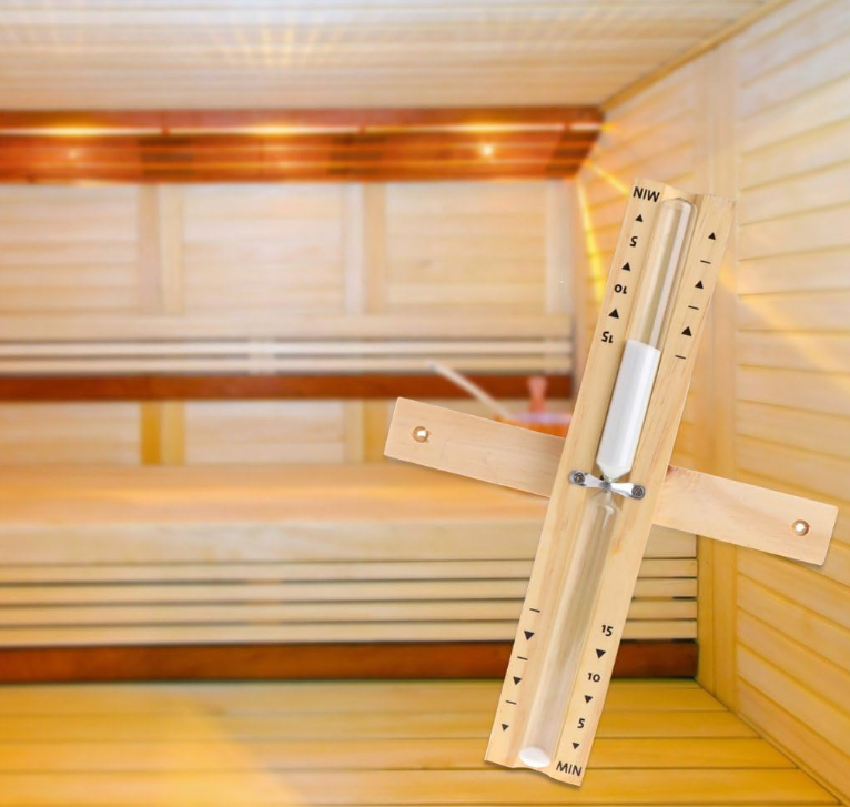 15 MINUTES – Une durée appréciée pour profiter d’une séance de sauna. Comprend également des marqueurs d’approximation de 5 et 10 minutes pour les sessions plus courtes.