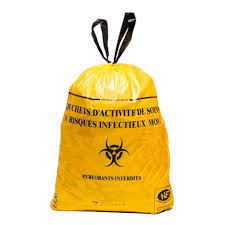 - Sacs poubelles destinés à récupérer les déchets infectieux mous uniquement, tels que les tampons compressifs, boules de coton, pansements, compresses, champs opératoires, charlottes médicales, surchaussures à usage unique, etc.