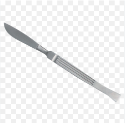 Un scalpel (ou bistouri à lame fixe) à manche plat utilisé dans un cadre médical ou en laboratoire lors des dissections.