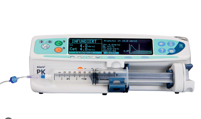 Le pousse seringue électrique est un Instrument utilisé pour maintenir un débit régulier lorsque des médicaments ou des liquides sont administrés dans l’organisme par voie intraveineuse.
