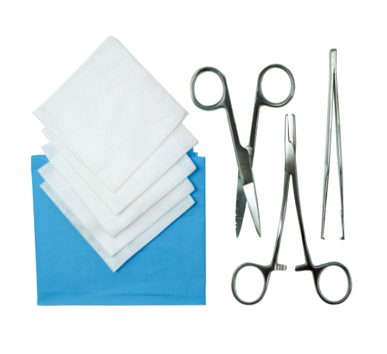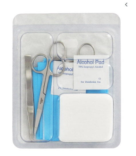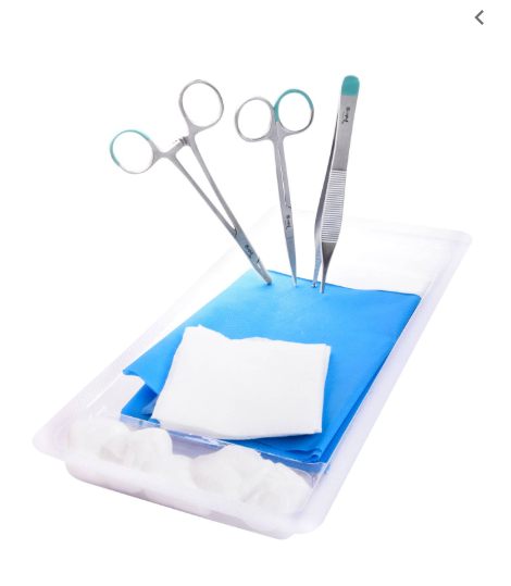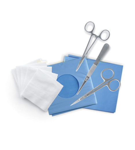Ce set de suture contient des instruments à usage unique de haute qualité, des compresses en non-tissé, des tampons de gaze et un champ troué adhésif. Le set stérile permet un traitement de plaies hygiénique par des sutures chirurgicales et minimise le risque de contaminations croisées et de transmissions d’infections. Tous les produits du set de suture stérile peuvent être jetés après l’utilisation.