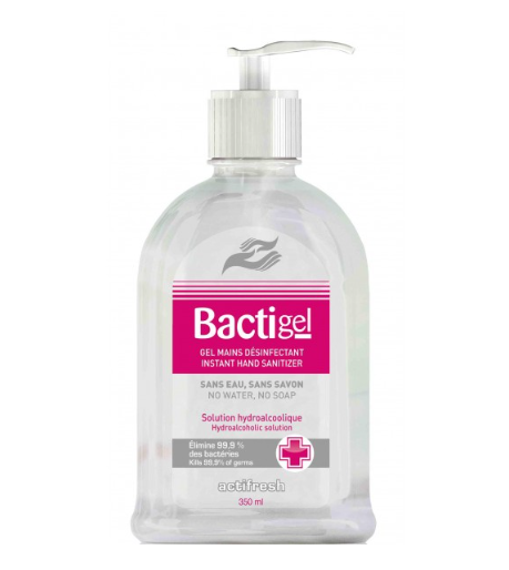 Idéal lorsque vous n’avez pas le temps de vous laver les mains, Bactigel s’utilise sans eau ni savon, ne se rince pas, et élimine 99,9% des bactéries.