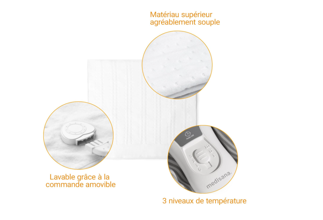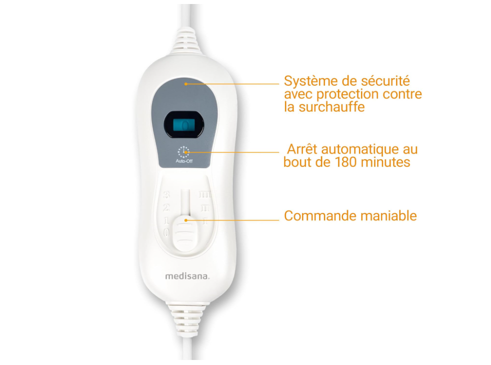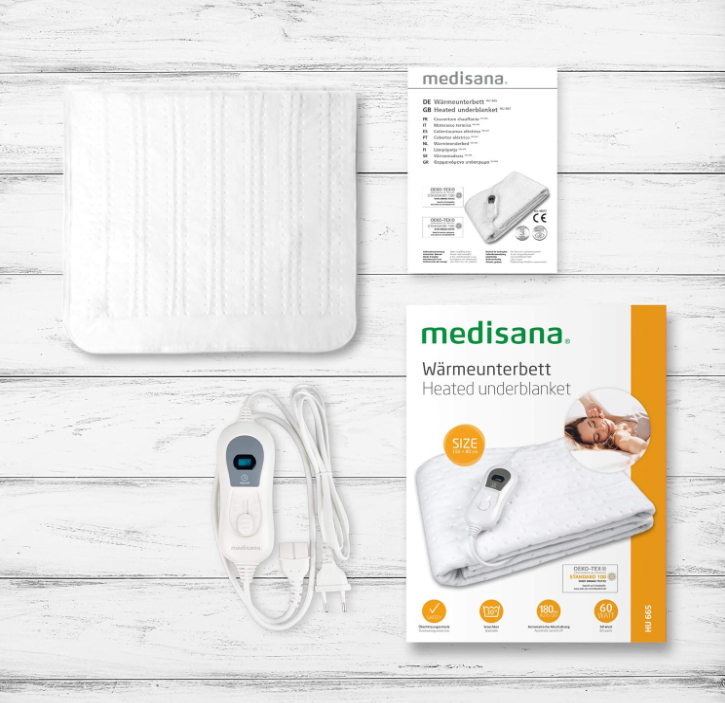 Le surmatelas chauffant HU 665 de medisana vous permet de réchauffer tout votre corps en douceur. La technologie moderne assure une répartition uniforme de la chaleur. Un système de sécurité avec protection contre la surchauffe vous permet de vous détendre en toute tranquillité. De plus, le sous-matelas chauffant s’éteint automatiquement au bout de 180 minutes. Grâce à l’interrupteur amovible, vous pouvez également laver le sous-matelas chauffant à 30 degrés.
