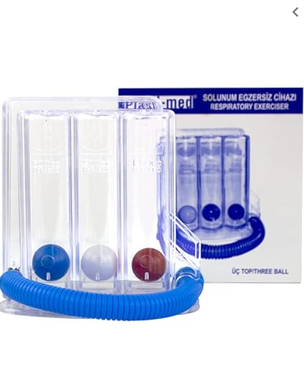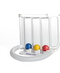 Spiromètre de réadaptation pulmonaire, avec billes de mesure couleur.