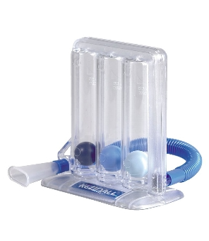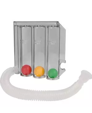 Modèle avec 3 billes de couleur pour le contrôle d’une inspiration profonde, en volume et en durée.