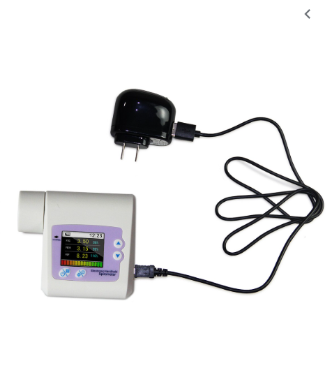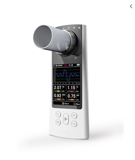 Mesure la capacité pulmonaire, avec fonction calibration, affichage graphique sous formes de courbes de flux/volume et de volume/temps.