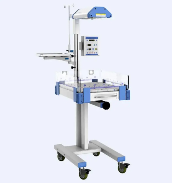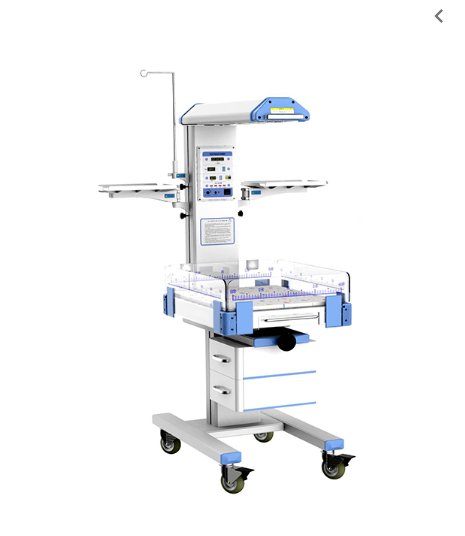 Le corps principal (y compris la source rayonnante, système de contrôle, lit d’enfant, support), cassette radiographique, Observez la lumière, IVpole, capteur de température de la peau, plateau, matelas, protecteur transparent, roulettes.